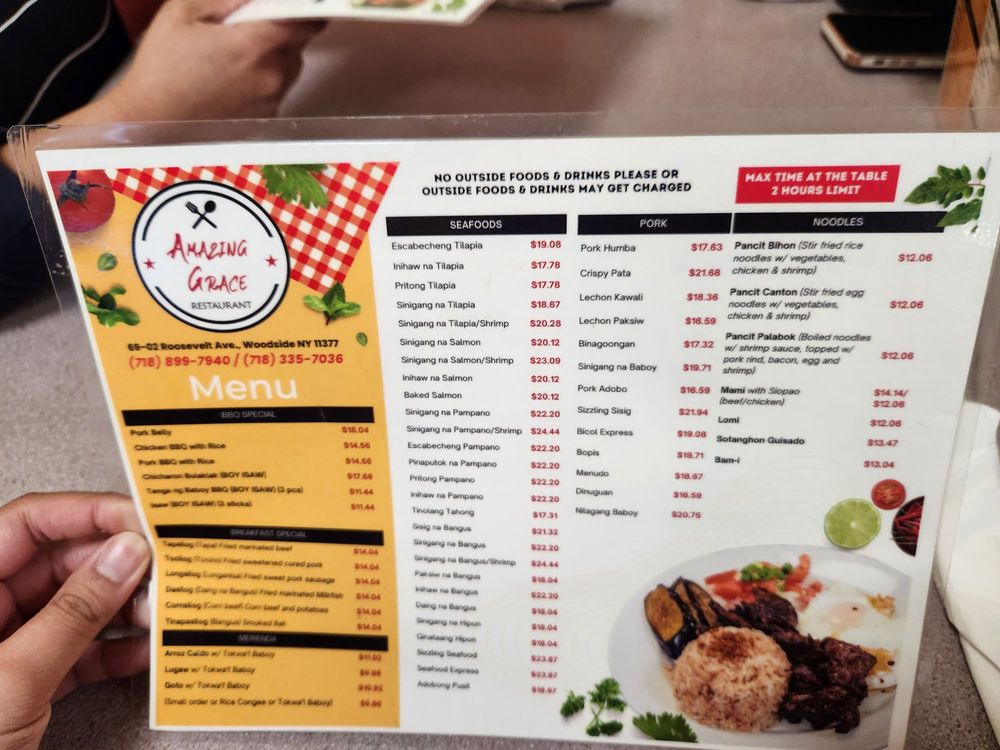 Introducing Amazing Grace, a Filipino restaurant located in Woodside, NY. Known for their delicious Cornsilog, tinapasilog, Pandesal, and Leche Flan. Customers rave about the lumpia with sweet chili and Mang Tomas sauces, Dasilog, grilled pork belly with garlic rice, and refreshing sagot gulaman. The tocilog, tapsilog, and sizzling sisig are also highly recommended, with tender and flavorful meats. The cozy atmosphere, moderate noise level, and Wi-Fi availability make it a great spot for breakfast or brunch. Amazing Grace offers delivery and takeout options, ensuring you can enjoy their mouthwatering dishes anywhere. Don't miss out on this gem for authentic Filipino cuisine.